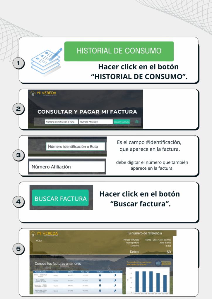 Este procedimiento tiene como finalidad establecer una guía clara y sistemática para que el Usuario pueda consultar, verificar y analizar el historial de consumo de agua potable. A través de este proceso, se busca garantizar la transparencia, la adecuada gestión de la facturación y el seguimiento eficiente del comportamiento de consumo por parte de los usuarios. La revisión del historial permite detectar posibles inconsistencias, identificar patrones inusuales que puedan indicar fugas o errores de lectura, y brindar a los usuarios información precisa cuando la soliciten. Además, sirve de base para responder a reclamaciones, ajustar tarifas en caso de errores comprobados y orientar campañas educativas sobre el uso responsable del recurso. El procedimiento detalla los pasos para acceder a los registros, los criterios de análisis y los formatos de registro que deben diligenciarse para dejar constancia de la revisión realizada.